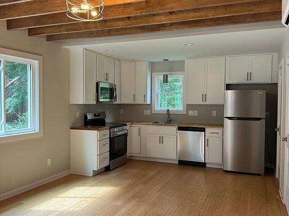 Beautiful new build located on a desirable street in West Asheville walking distance to businesses on Haywood Road, Malvern Hills Park, Lucy Herring Elementary, and more. Home is in pristine condition, as construction was just completed early June. First floor living area and kitchen with half bath and washer/dryer. Second floor two bedrooms and full bath. Mini split heating and cooling, fans in bedrooms, hardwood floors throughout, off-street parking, unfurnished. Available immediately. Small, sunny side yard would be perfect for a garden or outdoor entertaining. Local landlords. Message with questions or to schedule a showing. $2200 per month rent, six month to one-year lease option, one month rent deposit required (refundable), no pets, split utilities (tenant pays electric, landlord pays water/sewer), $50 application fee (background/credit checks).