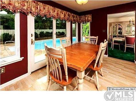 Easy Living! Your Own Private Pool & patio oasis situated on a well-manicured, yet manageable property featuring: In-ground pool with patio, 4 BR's, 2.5 updated baths, open floor plan with eat-in-kitchen, formal living & dining rooms, family room with fireplace, high ceiling well lighted finished basement rec room with game, media, gym and dance areas, exquisite MBR suite, professionally landscaped and 2 car garage. Close to all NYC transportation, GSP, Red Bank, beaches & shopping.