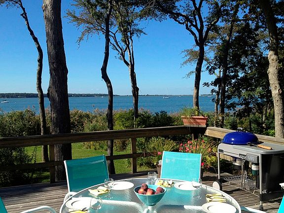Very special three-bedroom East Hampton Springs contemporary is waterfront with spectacular sunset views from most rooms and the large deck. There are three baths, living room, dining area and upstairs master suite with waterviews as well.