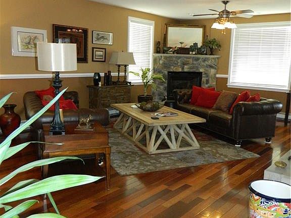 WOW...This house will take your breath away from the moment you step through the double door entry and gaze upon the 2 story foyer draped in sunlight through the palladium window. This home is adorned with Kempas Hardwoods, front to back sunken living room with stunning corner stone gas fireplace and oversized picture window. The kitchen is a chef's dream with a center island gas cooktop, stainless steel double oven, garbage disposal and oversized island that can seat 6-8 people. The master suite offers tray ceilings, stunning master bath with 2 person soaking tub under a large palladium window and a multi-shower head walk in shower...an 8x10 walk-in closet and additional unfinished room (over the garage) could complete this to make a true suite. All bedrooms can accommodate king size bedroom sets. Steel beam construction allows for the walkout basement to have minimal lally columns and will make a perfect theater or entertaining room.