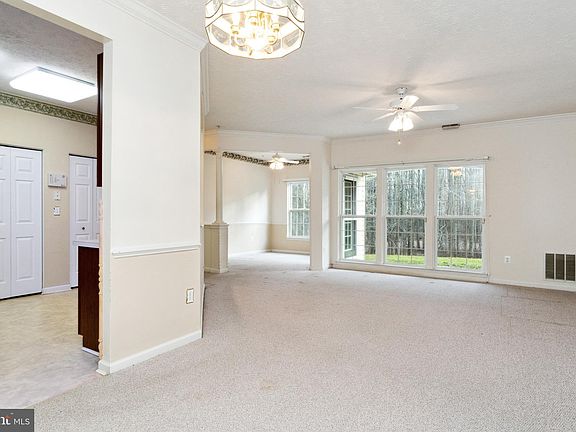 This is an Estate Sale that needs TLC, is selling AS-IS and the Estate will not make any repairs. This rarely available 1st floor condo in Perry Hall Farms includes tons of natural light, crown molding, chair rails, ceiling fans, 2 bedrooms (on opposite ends of the condo), 2 full bathrooms and is spacious with 1,325 SF. It comes with a bonus area (12'x8') for quiet time reading, office work or whatever you create it to be. The primary bedroom has 2 closets (one large walk-in) and it's own double sink bathroom with a shower stall and linen closet. The 2nd bathroom is a Jack-and-Jill bathroom, connecting to the 2nd bedroom and also opens into the livingroom. The mechanicals are located behind the door on the patio. The condo is secured with a home security system and intercom to let visitors in the front building door. This condo faces the rear of the building and has a concrete patio with views of trees and woods.