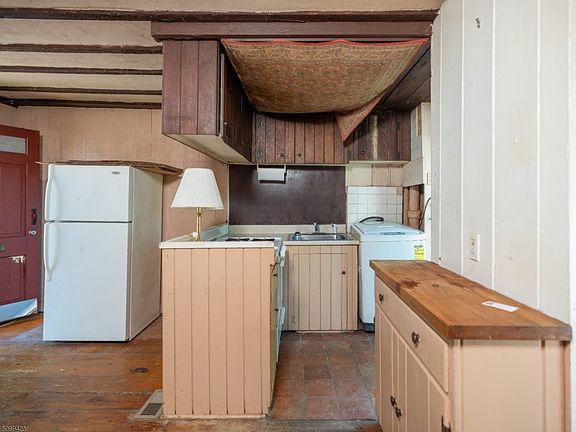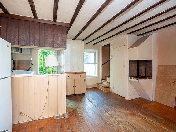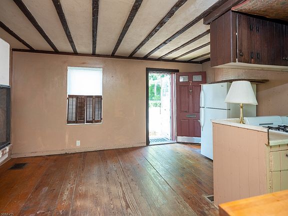 Sweet End unit w. Trinity Style facade,c.a.1830, stands proudly in the vibrant town of Lambertville. Antique charm & original features abound. Stucco over brick construction. All original pine floors. Classic Front patio.Relax at the sounds of the babbling Swan Creek from your own patio. Inside, the living room with cozy kitchen, rustic paneled cabinets and a door leading to the yard. Upstairs is the main bedroom with a hallway bath, the 3rd floors has a large second bedroom with skylights and side window to let the sun in. Brick floored basement; great for storage. Steps away from downtown with its shops, restaurants, antique stores and near the Towpath, this historic home can be your first time property, great investment or the idyllic week end pied a terre. Come and visit Swan Creek and be charmed!