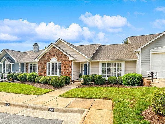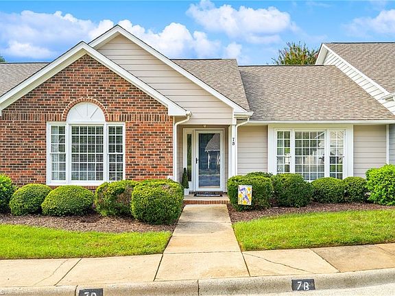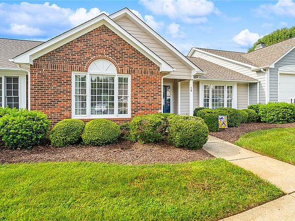 Updated and well maintained brick, one level patio home. Covered front porch. Entry with beautiful plank wood flooring leading to a vaulted, fireside Great Room, fireplace flanked with custom, built in benches, all open to spacious kitchen with white gleaming cabinetry, peninsula, perfect for a breakfast bar, recent granite counters and custom tile backsplash, Stainless appliances, walk in pantry, dining space. Lots of windows with recent custom blinds throughout allow for ample daylight! Primary Suite with WI closet, tiled en suite bath, 2nd closet. Second bedroom with WI closet, en suite tiled bath that also is accessible for guests from the hall. Assigned parking along with additional guest parking. Minutes to I-73, Starbucks, Shopping, Airport, I-40. HVAC 2016, recent neutral paint, Want to move right in? Ask about our fully furnished option! Agent related to seller.