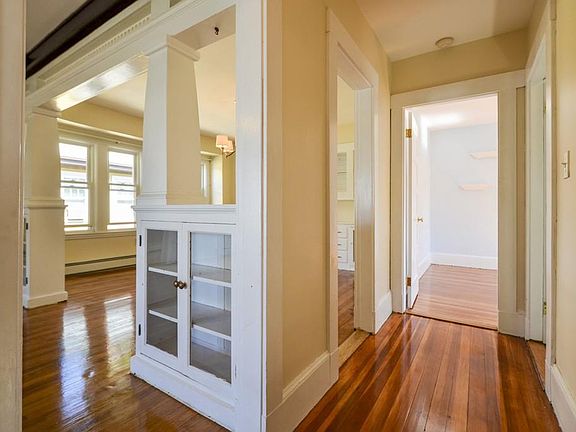 This light-filled, updated 3-bedroom residence is located in an attractive neighborhood of Medford. It boasts with open layout, spacious living space, hard-wood through out, sunroom, and fully-applianced eat-in kitchen. living room & dining room with much wood detail including built-in china cabinets, columns, beamed ceilings. This is the 2nd floor of a charming 2 family house. Great location, close to public transit , minutes to RT93, Boston, Cambridge and area shopping/entertaining centers. On quiet street with fenced-in private back yard, walk to Morison park. Water and laundry units are included. House is insulated with blown in insulation to save energy. No pets. No smoking. Credit and reference check required. Group Showing Sunday 7/23 1pm-2:30pm.