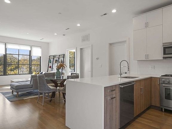 Located On One Of The Most Coveted Premier Side Streets in Jamaica Plain In A Magnificent Stately Neighborhood Just Down The Street To Both The Pond & Centre St: 2019 Construction! Boutique Elevator Bldg w/Bold Industrial Esthetics & Stunning Oversized Warehouse Style Picture Windows. Take The Elevator Directly Into Your Unit, Which Boasts A Spacious Open Floorplan, Almost 10' Ceilings & Gleaming Sunlight Throughout. The Living & Dining Rm Areas Open Up To A Magnificent Designer European Kitchen w/ Floor-To-Ceiling High-End Cabinets, Professional Style Appliances, Peninsula Seating, Quartz Waterfall Counters, In-Unit Laundry & Direct Rear Balcony Access. 2 Spacious Beds w/Generous Closet Space. Tasteful Bath w/Rain Shower, Tub & Subway Tiles In A Neutral Pallet. Recessed Smart Lighting, Wood Flooring & Central Air Throughout. Just Steps To The Emerald Necklace Green Space, Jamaica Pond Walking Trails, All Of The Best Shops & Restaurants on Centre St, Arboretum & MBTA Green St Station.