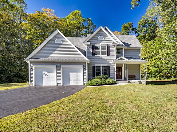 Welcome to this nicely maintained one-owner Colonial, offering 2,828 square feet of beautifully designed living space with 4 bedrooms, 2.5 baths, and an attached 2-car garage. Built in 2011, this home offers light-filled interiors, high ceilings, and hardwood floors throughout the main level. A covered front porch invites you into a two-story foyer that leads to a spacious living room featuring a soaring cathedral ceiling with fan and a cozy gas fireplace. The open-concept layout flows seamlessly into a breakfast area with sliders to the back deck and a kitchen with granite countertops, a tiered island, tiled backsplash, built-in pantry with pull-out drawers, and stainless steel appliances. A formal dining room just off the foyer showcases exquisite details including hardwood flooring with inlay, a tray ceiling with crown molding, and classic wainscoting; perfect for holiday meals and entertaining. Enjoy the ease of first-floor living with a primary suite on the main level, complete with a deep tray ceiling, crown molding and fan, a large walk-in closet, and a full bath with a jetted tub and separate shower. The main floor also includes a convenient laundry room and half bath. Upstairs you'll find three bedrooms and a full bath, providing plenty of space for family, guests, or a home office. Additional features include propane heat, central A/C, an automatic generator, and a full basement. Located minutes from downtown Deep River, the Connecticut River, shops and restaurants.