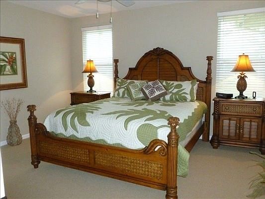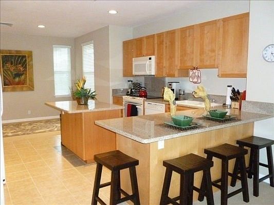 Successful Nihilani at Princeville vacation rental. This floor plan is the largest available Nihilani unit with 3 bedrooms and three full baths all on one upper level. This unit shows beautifully with numerous upgrades including custom window coverings, bamboo wood flooring, solid granite counter tops just to name a few. This light filled end unit has a very large and open floor plan. Enjoy the beautiful Kauai weather while relaxing on the two large lanais; one off the living area and the other off of bedroom 3. There are two large suites each with their own baths and walk-in closets. Nihilani is fully air conditioned, has a 2 car garage and one of the most relaxing pool areas/hot tub in Princeville. Nihilani is walking distance to the Makai Course, shops and restaurants in the Princeville Center and a short 15 minute drive to Hanalei town and beaches.