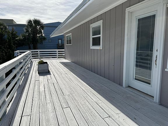 Amazing location. Fourth house from the sugary sands of St. Augustine Beach. Only 200 steps and your feet are in the sand. Imagine getting up early and watching the sunrise or going for an early morning surf or swim. Vintage St. Augustine Beach apartment. Bright and cheery, 2BR / 2BA 1,000 sq. feet, UNFURNISHED upstairs apartment. A large kitchen with a massive island makes a great workspace. Lots of stortage. Sip your coffee on the large wrap-around deck. Quiet street and neighborhood. Onsite parking. Luxury vinyl flooring and tile throughout. Laundry room downstairs. Very quiet street with no street parking. Quiet downstairs neighbor. Smoke-free and drug-free environment. On-site parking for two vehicles. Walking distance to restaurants and shops. Unfurnished. 6-month lease with the possibility for extension. Water, electricity, wifi, and lawn care are the tenants' responsibility. MOVE IN: 1st, last, and security. Background and credit checks are required. MOVE IN: 1st, last and security. Background and credit check required. Six month lease could be extended to annual if all parties agree after six months.