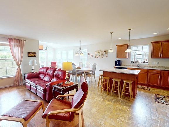One floor living in this beautiful home in Blossom Hill development! The Abbey floor plan includes three bedrooms, two full baths, an open floor plan living area which includes a sunroom. The living area features hardwood floor and a natural gas ventless fireplace, with views of the fields from the large windows. No other homes will be built here, so your view is always going to be of nature. The country kitchen includes a large kitchen island, gas stove, pantry and recessed task lighting. The dining area is open to the living room and sunroom for many configurations of furniture. A primary bedroom includes a walk-in-closet and en suite bathroom with double sink vanity, walk-in shower and linen closet. Two more bedrooms can be used for office space or bedrooms, depending on your needs. The main floor laundry is so convenient! A full unfinished basement offers many options, and includes an egress window for a possible finished room. This home has natural gas heating and central AC, as well as gas water heater. Located in the convenient Blossom Hill neigborhood, it is close to Rte 322 for a quick commute to State College or Harrisburg. Be sure to schedule a showing soon- it won't last long!
