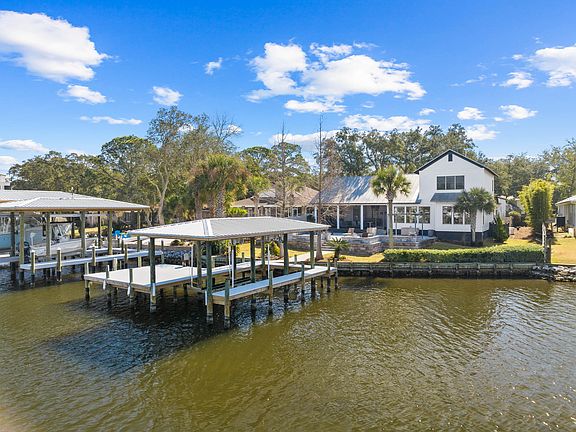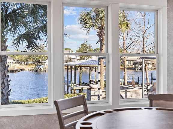 Boasting a stunning waterfront location on peaceful Buck Bayou, this beautiful home sits on a generous lot and is destined for boat lovers. The deep-water boat dock includes a new boat lift and ample space to accommodate all your pleasure craft on the 91-foot waterfront with direct access to Choctawhatchee Bay and the Gulf of Mexico. Recently updated, this immaculate home has a huge open floor plan that includes an e-touch wall fireplace, wainscoting and shiplap accents beneath the coffered ceiling. It creates a clean contemporary living space that's worthy of the outstanding location. The adjoining dining room is equally avant-garde with white oak hardwood flooring and tasteful decor providing a neutral backdrop for the stunning views. A screened patio with gas fireplace and electric shades provides a serene space for socializing and relaxing. The wood-and-white theme continues in the gourmet Milano kitchen with its quartz countertops and pecky cypress accents. Stainless appliances include an oversized stove with hood and a KitchenAid warming drawer and refrigerator gracing the built-in wet bar in the butler's pantry. This amazing home has four beds including two on the second floor. The remodeled master suite has a walk-in closet and stunning bayou views while the adjoining bathroom has a sleek oval tub, his-and-hers vanities and a wet room-style shower with floor-to-ceiling marble-effect walls. The outdoor living space will not disappoint with newly laid pavers on the expansive waterfront terrace. Hook-ups are ready for you to add your own hot tub to this outdoor paradise. Relax on lounge chairs savoring views of passing boats or light up the grill and invite friends round for an impromptu barbecue. Solar lighting and outdoor speakers allow you to create your own perfect paradise. The fenced yard has lush landscaping with automated irrigation and the home has zero HOA fees. The generous lot includes a two-car garage with workshop, storage and a cute one-bed guest house with its own living room and kitchen. The gated driveway provides ample space for parking vehicles and watercraft while a home generator and ring security system provide added peace of mind.