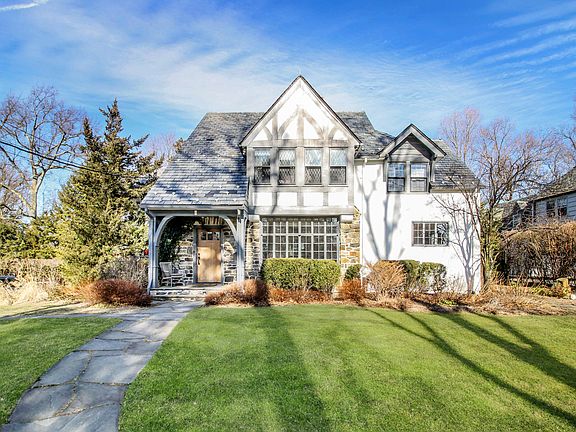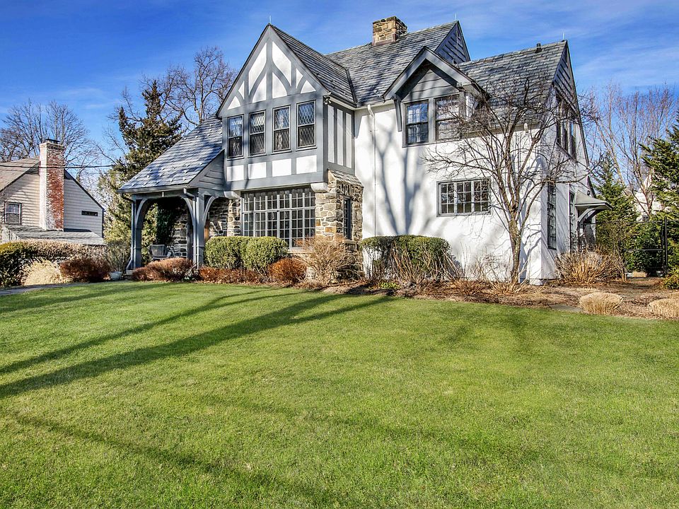 Classic, old charm Cotswold Norman Tudor in sought-after Old Edgemont area. House is located on a quiet street a very short distance to schools, train, shops. Full of light, exquisitely maintained, dramatic leaded windows and beautiful hardwood floors, easy living at its best. Big, flat and fenced yard with a great stone patio.