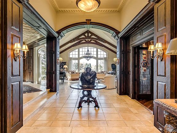 Gracefully poised in pastoral Cherry Hills Village is one of the most dramatic and spectacular estates in the Denver Metro area. Inspired by some of the finest country homes around the world, this exceptional residence offers authentic simplicity in its beautiful architecture and unique floor plan. With its signature presence, this remarkable estate offers lovely vistas of lakes, rolling meadows and is framed by commanding Rocky Mountain Views from every room in the home. Towering ceilings, rustic, Douglas fir timbers and richly plastered walls are punctuated by the home's rich and sophisticated tones, generous scale and warm and inviting interiors. This extraordinary residence was created and designed with a blend of meticulous detail and exceptional quality. The home features a buff, Texas, limestone exterior, custom, wrought-iron gates and doorways, leaded-glass french doors, and reclaimed, chestnut floors while a magnificently, appointed, gourmet kitchen, spacious family room and separate dining room make for warm and gracious entertaining. The expansive Master Suite offers spectacular mountain views with french doors leading to a large terrace with a fire pit and separate seating. As you stroll on the grounds there are stone walkways, exquisite gardens, waterfalls and ponds. The property is a breathtaking mix of expansive lawn, gardens, specimen trees, a fabulous pool and spa, with a private pool house, all surrounded by a large stone terrace, huge fireplace and ivy covered pergolas and pillared accents. The walk-out lower level features a beautiful family room with a stone fireplace, a custom-designed wooden bar overlooking the theatre and billiard area, and 3 guest quarters that lead to an outdoor terrace, lawn, gardens and the private pool area.