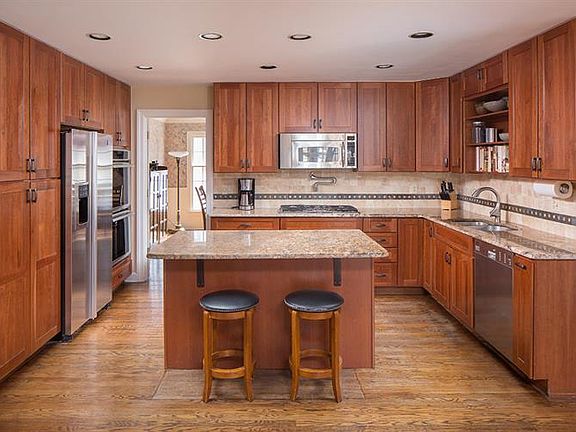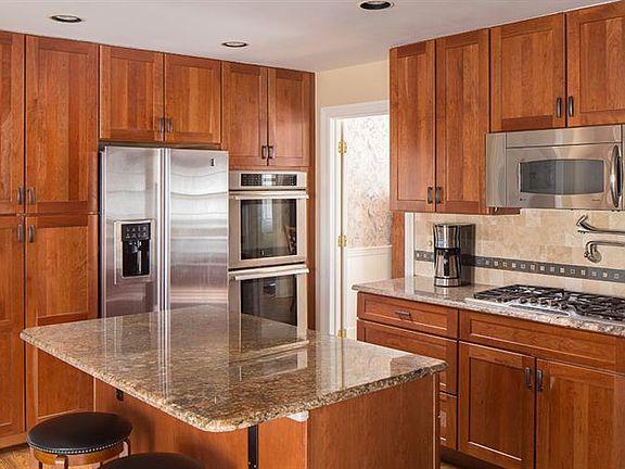 This two-story, traditionally-styled residence is beautifully situated on a cul-de-sac of distinctive homes. The home features spacious rooms of character, H W floors on both levels and fully renovated kitchen and baths. The gorgeous all-granite chef's kitchen has 42" furniture-quality cabinetry, tumbled-marble backsplash, pro-grade appliances, a large separate dining area w atrium door to the deck and butler's pantry with a frig, s s sink, cabinetry and wine rack. Both living room and family rooms offer wood-burning fireplaces while a formal dining room accommodates a crowd. A 1st floor study, 2 powder rooms and a large mud laundry room complete level one. The 2nd floor features a master suite w sitting and dressing areas and a huge spa-like bath. Three more bedrooms are serviced by a renovated hall bath.