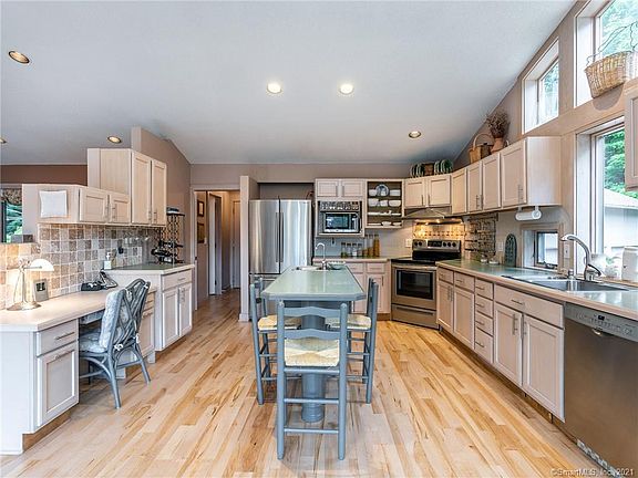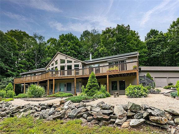 Impeccably maintained, private Country Contemporary on 3.25+/- acres in Roxbury. Set back up a long driveway and located on a quiet cul de sac, this low maintenance home was designed and built for maximum energy efficiency. Light and bright sun-filled rooms on the main living level include a spacious gourmet kitchen with island, generous pantry, a brick floor potting area and direct access to the large southern exposure front deck. The open concept layout is perfect for entertaining featuring a formal dining nook connecting the kitchen to the large living room with vaulted ceilings and accent fireplace. Unfettered views of the rustic grove-like wooded landscape from every window! Primary bedroom located on main level has a large sitting area/den with built in shelving, large en suite bathroom with Jacuzzi whirlpool tub, massive closet space/dressing room and a darling private 3 season sun porch! The lower level has a full family room, 2 guest bedrooms with full bath and your own personal spa, replete with exercise room, full bath and sauna! Attached 4 car garage includes loft storage, multiple work areas and cabinetry with a 16' workbench. Photovoltaic solar panel system installed in 2009 was sized to cover the home's yearly usage. Secluded yard features versatile raised bed garden area in front and a hide-a-way back deck. Must see home!