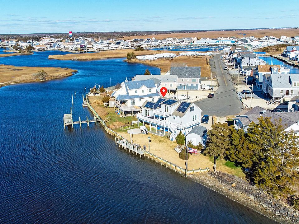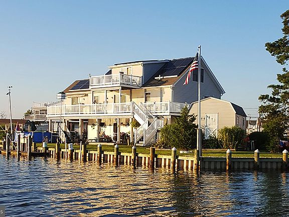 WATERFRONT TRANQUILITY at the end of cul-de-sac on Tuckerton Beach! This raised 3 bedroom, 1.5 bath house has 360 degree water views and 127? water frontage with private dock on deep canal making it a terrific opportunity own as a primary or secondary home. Imagine yourself enjoying beautiful sunrises, sunsets and views of the Atlantic City skyline from the multiple decks! The main level offers access to a wrap-around deck from the master suite, sunny living room with gas log fireplace and huge kitchen with a center island, granite countertops and stainless steel appliances. The upper level has 2 more bedrooms, bath and bonus area/office with another private deck overlooking the water. The lower level has tons of storage and a 1-car garage. The current owners have put a lot of love into maintenance of this house and it shows through the custom tile and woodwork seen throughout. Whether you are a fisherman, boater, birdwatcher or just want to sit and relax watching the swans float past, this is the perfect property for you! As an added bonus, a collapsible above-ground pool stored in the oversized storage shed is being included in the sale. NOW TAKING APPOINTMENTS FOR SHOWINGS NEXT WEEK. SELLER OFFERING HOME WARRANTY. 2021-02-26