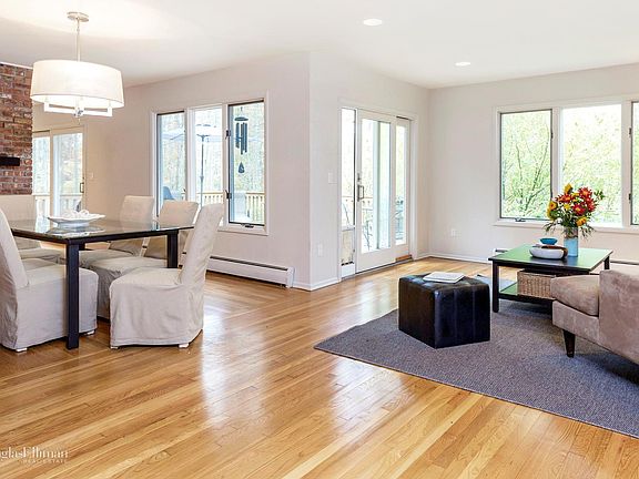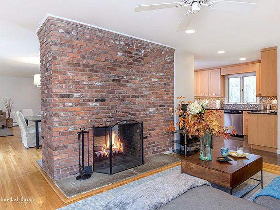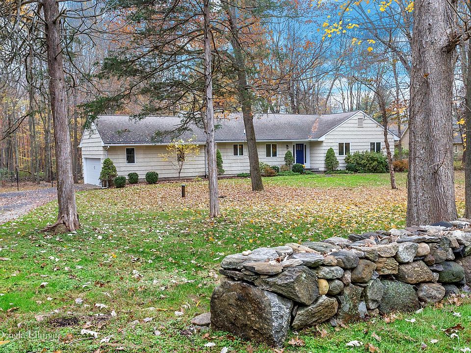 NEW TO THE MARKET! Lovely 3 bedroom ranch house with two-sided fireplace and renovated eat-in kitchen. Wonderful open flow of the public rooms. Extraordinary 2 acre lot- flat and dry with back yard fenced for dogs. Quiet cul-de-sac. Taxes reflect Veterans exemption. Will go up to approximately $10,142. March closing necessary