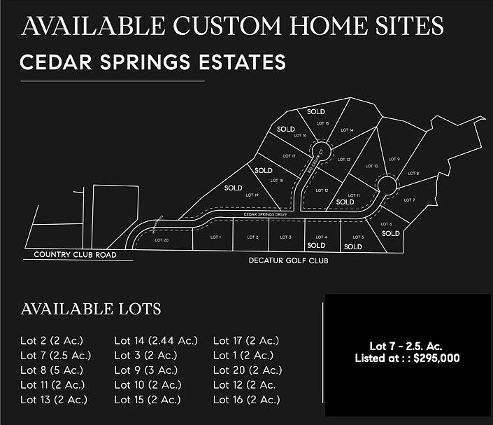 - Parcel number: Cedar Springs Estates Lot 7