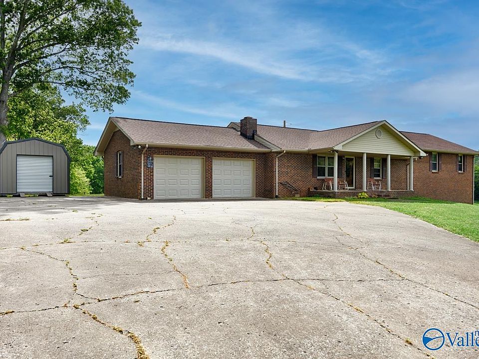 The brick rancher on a sprawling 5.2 acres features a covered porch for enjoying the stunning views. A detached 10x20 storage building offers plenty of space for all your outdoor equipment and tools. Inside, the living room is cozy with a brick fireplace and plenty of natural light. The eat-in kitchen is perfect for family meals with ample cabinet and counter space. The master bedroom is a retreat with a private en suite featuring a luxurious soaking tub and separate shower. The unfinished basement provides endless possibilities for additional living space or storage. With heating and cooling already in place, it's a versatile area that can be customized to fit your needs. A Must see!