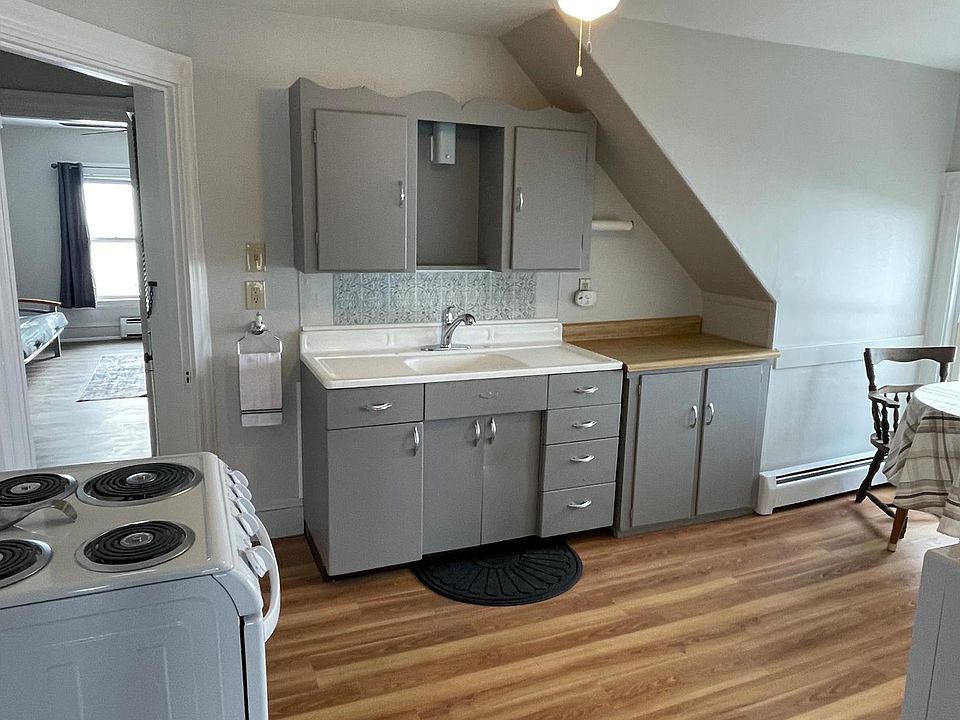Updated 1bedroom apartment with garage Just repainted, new lighting and flooring. No laundry on site. Renter pays for internet, cable and renter's insurance, everything else is included.