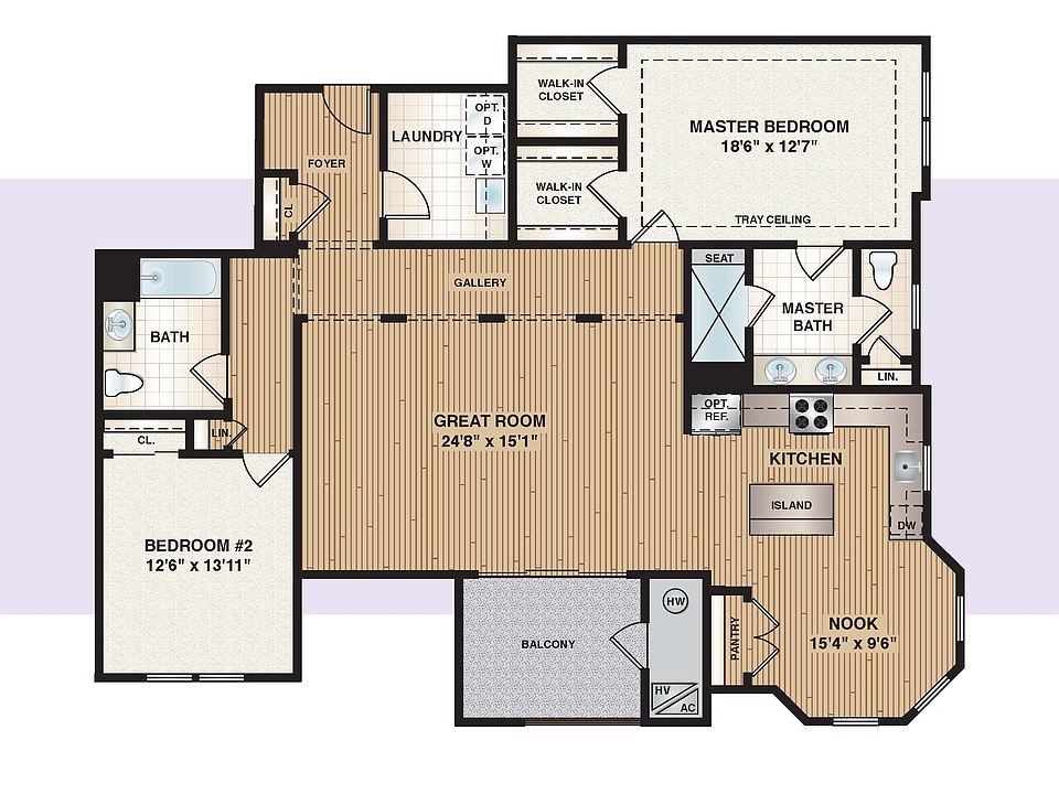 The lovely Fairfax 1 floorplan opens to a beautiful foyer that leads to a great room. The kitchen, which features a breakfast nook and island, is perfect for making delicious meals and entertaining. The master bedroom offers two walk-in closets.