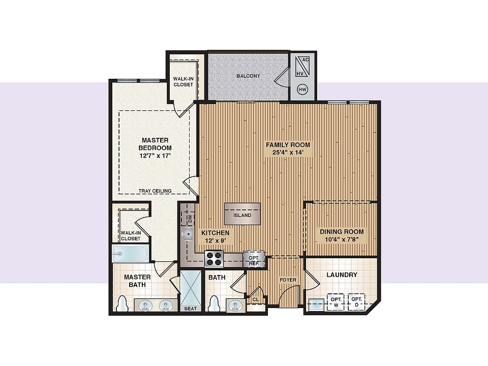 The beautiful Anson 2 features a kitchen with center island and a large family room that opens up to your own private balcony. The master bedroom highlights two spacious walk-in closets.