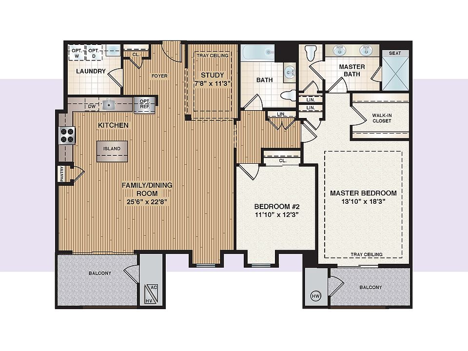 The Edmond 3 offers residents a gorgeous master bedroom with its own private balcony along with a generous family and dining room that leads into an additional balcony.