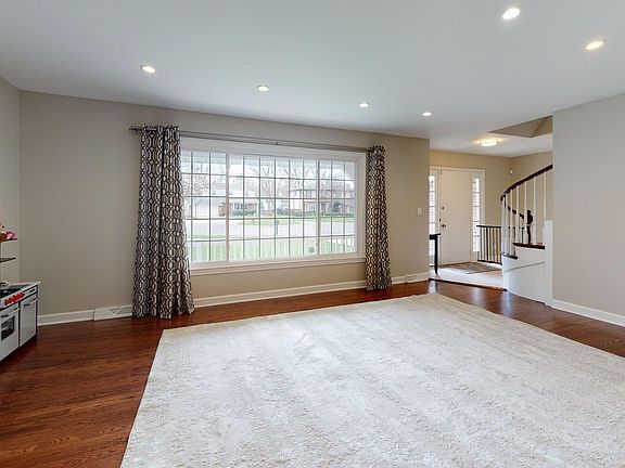 Welcome home... Location! Size! Updates! Spacious 2,500+ sq.ft. ready to move in home with a great floor plan, sun room addition and an incredible back yard all nestled on a quiet cul-de-sac location! Extra long concrete driveway, walkway and porch lead to the entry foyer with ceramic tile floor. Beautiful hardwood floors throughout the living room, dining room and family room with recessed lights and updated fixtures. Gorgeous remodeled kitchen with shaker cabinets, granite counters, modern backsplash, recessed lights, stainless steel appliances and pantry closet. Eating area with a large window overlooking the fully fenced yard. Open design from the kitchen to the family room and easy access to the dining room. The family room has a contemporary stone surround fireplace and recessed lighting leading into the large three-season room and paver patio. Curved wood stairs lead up to the master suite with hardwood flooring, dual closets and a luxury bath featuring dual vanity and sinks, and a gorgeous custom walk-in shower with accent tiles. Three additional good- size bedrooms with hardwood floors, overhead lighting, and easy access to the remodeled hallway bathroom with dual vanity and sinks and custom tiles. Fantastic finished basement with a large rec room or play room, laundry room, storage area, and a full bath. Fenced back yard with kids playset, a shed and paver patio.*** 3D Matterport Tour or E-Z in person ***