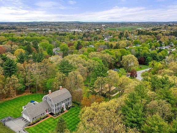 Magnificent center entrance colonial on a private cul-de-sac w/ almost an acre of impeccably landscaped grounds in a sought after neighborhood. Enjoy living in this renovated home w/ custom finishes & designer upgrades. As you enter the gracious foyer there is a large living room & a spacious den both w/ a fireplace. A large eat-in kitchen w/ numerous upgrades, high end appliances including a wine fridge, quartz countertops & a pantry. There is a formal dining room w/ french doors, a home office, two half-baths, a mud room, an enclosed seasonal porch & a tremendous wrap-around deck perfect for large scale entertaining. On the 2nd level there is the primary bedroom with en-suite bath, 3 additional bedrooms & a full bath. The 3rd level is perfect as a media/playroom/additional home office. Other features: hardwood floors throughout, recessed lighting, numerous windows, private artesian well for the irrigation system & central AC. Close to town center, schools, restaurants & Rtes 3 & 495