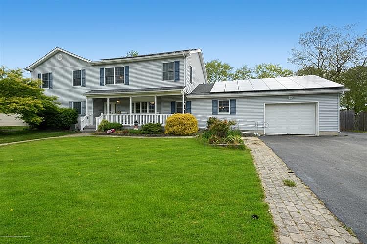 Expansive Howell 5 bedroom 3.5 Bath Home with Many Possibilities. This Home features 2 Master Bedroom suites with 2 Master Baths. One Master Bedroom is on the First level. Plus 3 Additional second level Bedrooms . Two Living rooms, a large first floor Rec Room, Over sized garage, Basement with Bilco doors, Enclosed sun Porch, Fenced Yard and an In ground pool. Owned Solar Panels help with your Electric Bill. This home is like no other. Great for expanding Large families. Plenty of room for in laws or guests.