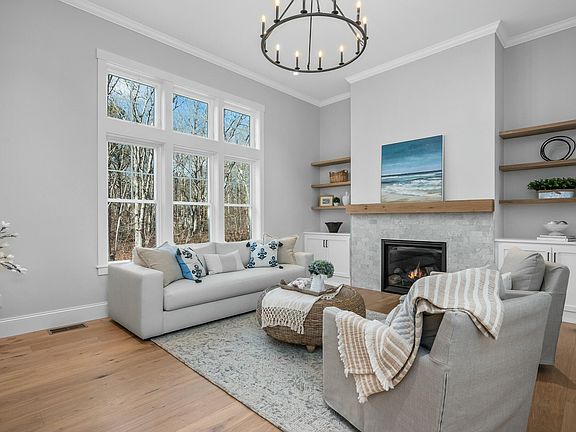 New Construction!Welcome to 7 Checkerberry Ln, a stunning single-family residence in the charming neighborhood of Forestdale Estates. This exquisite home boasts a perfect blend of elegance and comfort, featuring 3 spacious bedrooms and 2.5 beautifully appointed bathrooms. As you step inside, you'll be greeted by the grandeur of high ceilings, enhanced by elegant crown mouldings and graceful chandeliers that illuminate the space. The inviting foyer leads you to an expansive living area with impressive built-ins, tall ceilings and where a cozy fireplace provides warmth and ambiance. The chef's kitchen is a culinary delight, equipped with a gas stove, and a generous island that makes meal preparation a breeze. Adjacent to the kitchen, the large dining area is perfect for entertaining guests. The main floor hosts the primary suite, complete with a luxurious ensuite bathroom and a walk-in closet. Additional features include a versatile home office, a convenient powder room, and a full basement offering ample storage space. Outside, enjoy the tranquility of your private yard and patio, ideal for relaxing or hosting gatherings. The property also includes an expansive lot that backs up to open space, providing plenty of outdoor space to enjoy.