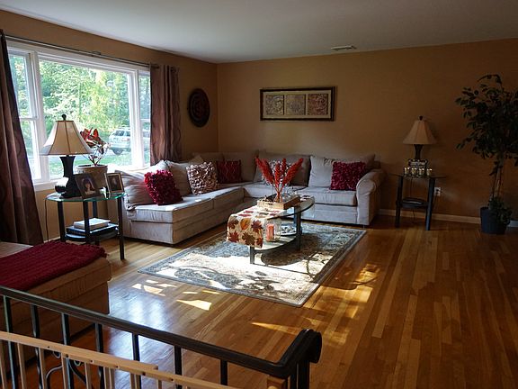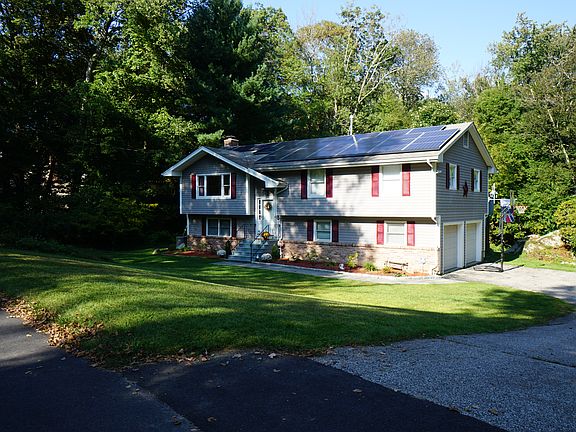 Oversized Raised Ranch located in a very desirable neighborhood with great schools! Private corner lot on a cul-de-sac street . Spacious open floor plan with hardwood flooring throughout the main level , new carpet on the lower level. Enjoy holidays or special gatherings around the table in your formal dining room . The kitchen offers stainless steel appliances, breakfast bar , open to the family room. The bonus room features dramatic vaulted ceilings, beams , propane fireplace, and walk out to the back deck. Perfect for barbequeing or morning coffee. Master bedroom features a walk in closet and full bath on same floor with the other 2 good size bedrooms. Lower level has a guest bedroom, full mud room with washer/ dryer hook up, play room with wood burning fireplace, and 1/2 bath. Perfect for overnight guests and young ones to put all their stuff from being outside. Energy efficient using natural clean Solar powered from the sun. Helps tremendously during the sunny months on energy costs. Hooked up to public water supply. Private pond right down the road. Additional improvements by owner, Cooling-Central Air, Propane heating upper level, brand new efficient water heater, added insulation in attic, updated bathrooms, New paint, new carpet lower level, landscaping. Heating- Forced Air. Turn key , ready to move in!