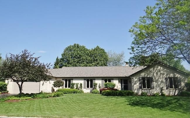 Beautifully updated brick ranch in Wind Meadows. Gracious entry and formal living and dining rooms with crown molding. Sharp decorating throughout. Open concept family room and kitchen with wall of custom-designed built-ins. Stunning gas fireplace. Corian counters, stainless steel appliances, ceramic tile, island. Sunny dinette, new bay window. four bedrooms and two remodeled quality bathrooms. Main floor laundry-mud room, half bath. Professionally-finished rec room.