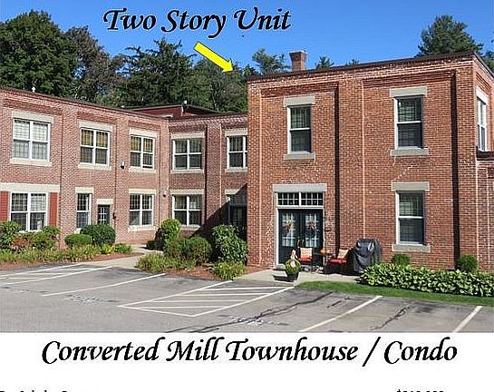 Have you ever dreamed of living in a beautiful old mill building with TALL WOOD CEILINGS, tons of ORIGINAL BRICK and the charm of the past? Here is your opportunity to own, not one, but TWO FLOORS with 2 ½ baths, 2 bedrooms with ORIGINAL WOOD FLOORS and those beautiful WOOD BEAMS! There is NO carpet in this place--all wood flooring and stairs with ceramic-tiled bathrooms. Direct entry from your ASSIGNED parking spot, conveniently right outside your door. Also, you have your detached GARAGE with WALK UP STORAGE. As you step through your DOUBLE DOORS with large TRANSOM WINDOW above, you instantly notice the wood, the brick and the light-filled OPEN CONCEPT. The FRESHLY PAINTED space features a GAS FIREPLACE, MAPLE kitchen cabinets with GRANITE COUNTERTOPS, including island that seats four, and stainless steel appliances. A pantry/utility closet and half bath round out the first level. On the second level, you enter a roomy hall with two large closets and access to your washer/dryer (negotiable). The two bedrooms offer lots of closet space and each gets their own full bathroom. All of this sits on a beautiful 10 acre property with two gazebos, walking trail, covered bridge and the river that runs through. You will own one of the few units where you can have a GAS GRILL outside your door. Pets- one dog OR cat under 25lbs. Make mill living a reality in this move-in ready unit! 55+ community, under 55 possible with board approval. Attention Agents! Bring your clients, buyers agent incentive offered. Contact for details. For Sale By Owner: Derek & Suzanne Desrochers ddesrochers97@msn.com (603)765-2879