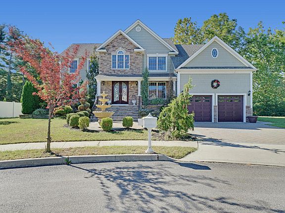 Ideally situated on a cul-de-sac! This CUSTOM COLONIAL with incredible workmanship welcomes you to the inviting covered front porch, paver driveway,professional Landscaping, cedar impression siding on all 4 sides with stone and custom double wide front doors. Home offers 4 beds, 4.5 bath & study. Amenities:Grand Two story foyer & LV, DR, gourmet kitchen w/center island, granite counters,leading to a 2 story familyroom w/gas fp & 2 stair case, Master bedroom w/ WI closets, full bath, double vanity, whirlpool & tiled shower stall. 9'ceilings on 1st floor, Hd flrs through-out 1st flr & 2nd,dec moldings, Anderson 400 series windows, High efficiency heat & air 2 zone heat & A/C,100 year roof, 7' high custom garage doors. Full finished basement w/bath and bar. Minutes to GSP, Train, Bus & Ferry.