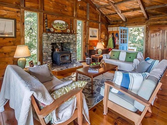 This charming Chilmark cottage offers unexpected water views of the Vineyard Sound. Private and tranquil, the two bedroom, two bath main house and separate two bedroom guest suite, and garage is nestled in the woods off of Tea Lane on Chilmark's North Shore. The main house features an open concept living space comprised of a great room, open kitchen, and dining area with high ceilings, wide planked hardwood floors, an impressive stone fireplace and a wall of windows looking out onto an expansive view of the Sound. The main house has two bedrooms, both facing the water, and two bathrooms, designed with a warm post and beam style that fits so well in the natural beauty of the Chilmark woods. The property has a spacious two car garage with a guest suite above which offers two bedrooms, a bathroom, and study space. The property has a six bedroom septic in place offering the possibility for expansion. The house was built to be a three season home, but the Seller is currently installing additional insulation and a heat pump. This is a wonderful investment opportunity for a Chilmark Buyer looking for a special view at a great price.