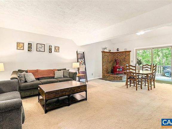 Time for a summer at the Lake! This 3-bedroom two full bath home offers a versatile floorplan with a bedroom (currently used as an office) and full bath on the main level. Additionally, you will find a spacious living room that flows seamlessly to the dining room where you will find a lovely vaulted ceiling inviting light and openness to the space. Through the sliding door you can access the large, private, back deck and yard replete with a storage shed. The Kitchen boasts wood cabinets, a lovely tiled backsplash, great counter space with enough room for an island. The convenient mud/ laundry room combo with side porch access to the driveway can be handily hidden away with the slide of the pocket door! Upstairs you will find two comfortable bedrooms (one currently used as a primary) and another full bathroom with a unique tile surround. Don't miss the extra storage located on this level! Recent updates include new dishwasher, fresh paint, recently built front porch with new stain, side porch, and a french drain. Crawl is also encapsulated. This lot is private and rests on a quiet cul-de-sac with water views at the end. A short walk over to Beach 5! Media links for more information about Lake Monticello amenities