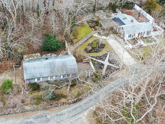 This Cape Cod cottage is anything but cookie cutter. Tucked away on a private lane off 6A you'll find a most unique property. The two tiny buildings are sited on a private, lushly landscaped 0.83 acre lot close to Gray's Beach, shopping, golf and fabulous Northside restaurants. The main cottage oozes charm and character with warm wood floors, vaulted ceilings, custom woodwork, and cubbies, closets, nooks and crannies galore. Unique and flexible floor plan offers a spacious kitchen with island, separate dining area or den, open living/sleeping quarters and custom bath. The Harmon pellet stove just warms you to the core, taking the chill off those cold New England evenings. The other tiny building boasts a one car garage, and separate room with full private bath guest quarters, home office, or artist studio perhaps? Sweet and unique vacation home, starter home or ultimate downsize home. Please NO DRIVE-BY'S - private lane. Seller shall review offers submitted up to 5pm 2/20 and respond by 5pm 2/21.