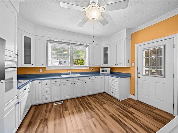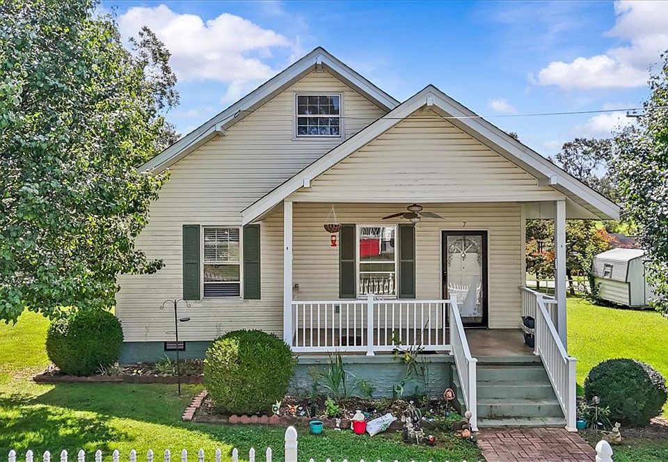 Cute and Cozy!! This picturesque home awaits you just beyond the white picket fence. Enjoy your evenings from the large front porch or the screened back porch. The living room features a beautiful tray ceiling and new COREtec luxury vinyl flooring with pine wood flooring in the second bedroom. In the kitchen, you will find an abundance of counter space and cabinets. The large backyard is ready to welcome the kids or pets. There are 2 large storage buildings in the back, one of which is wired for electricity and can be used for a workshop. Come add the final touches and make this home your's today!