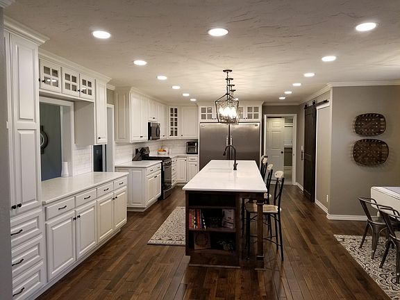 ABSOLUTELY STUNNING completely remodeled 4 bedroom, 3 bath home that features an open floor plan with hardwood floors, breathtaking kitchen with new quartz countertops, commercial size refrigerator, walk-in pantry, new cabinets, ice maker, gas stove, all new fixtures and eat-in area. This beautiful home also features, a new master suite with 12 x 11 walk-in closet, walk-in shower and jetted tub. The home also includes formal dining, two living areas, gas fireplace, wood burning insert and a large laundry room. This property sits on almost an acre and has a large deck, detached oversized garage and play area.
