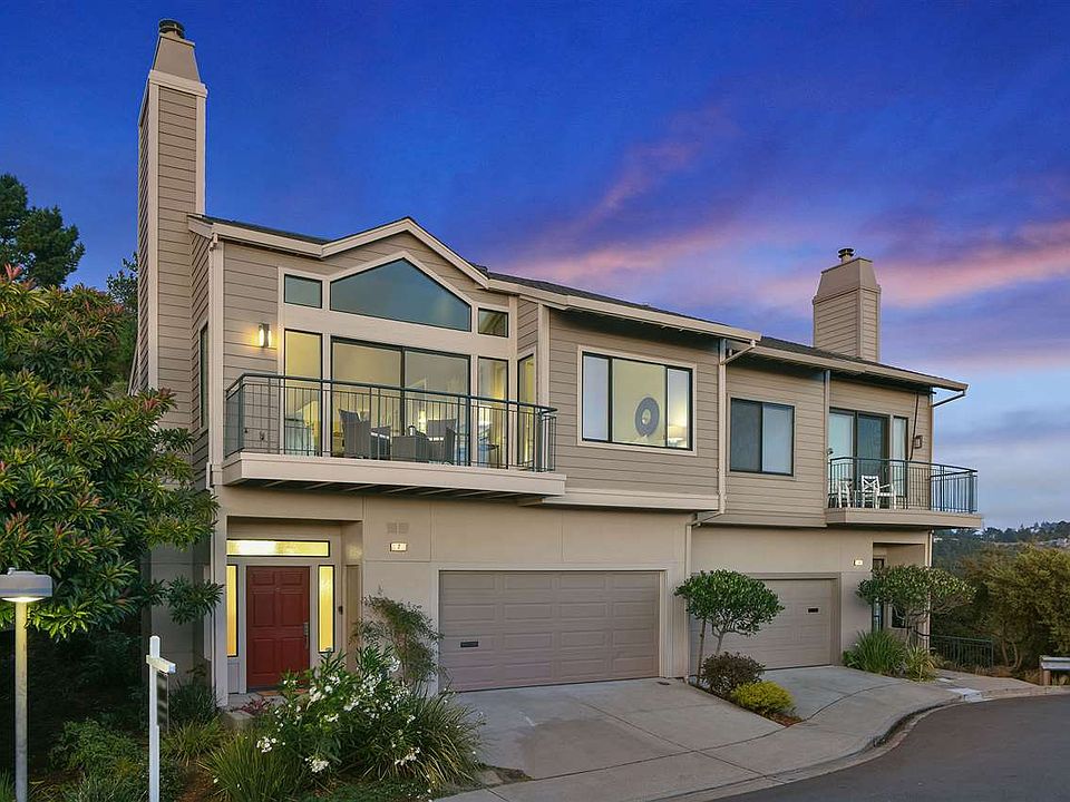 Panoramic Golden Gate Bridge & Bay views will take your breath away in this sophisticated townhome nestled on one of the most coveted streets in the Hiller Highlands neighborhood. Located on a quiet cul-de-sac, this end-unit features rare "4 bridge" views from the balcony, and has a garden and private back deck with ample space for dining and entertaining. There are 2 ensuite "master" bedrooms and an additional bedroom which can also make an excellent office or den. The kitchen features new countertops, new stainless steel appliances, and elegant modern lighting fixtures. A 2 car attached garage with interior access, air conditioning, and ample storage space round out this gem in the Oakland hills! (HOA dues are $610/ quarter, which is about $203/ month).
