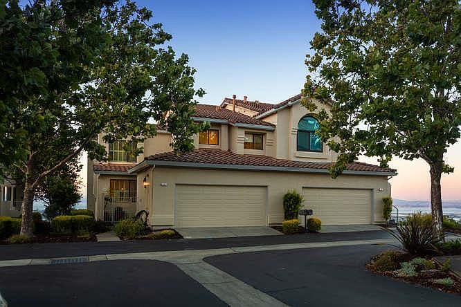 SPECTACULAR PANORAMIC VIEWS OF SAN FRANCISCO SKYLINE, BAY BRIDGE, BEAUTIFUL BLUE BAY, SAN MATEO BRIDGE, THE PENINSULA, EASTERN MOUNTAINS DOWN TO SILICON VALLEY OR SANTA CLARA. 1990sf, 2BR + Den, (1 bedroom, bath & den on the first level). LR/DR, Breakfast nook, granite kitchen all with a wrap-around view. Ascend the sun-blessed staircase with a light-catching huge window. Enormous multi-use loft. Upper level Suite with 2nd fireplace and large window that frames the multi-million dollar view. Enviable double-sided walk-in closet. Spa tub, separate shower, double sinks. Hardwood floors 1st level, canned lighting, view-framed veranda accessible from the living room, and breakfast nook for the perfect entertaining flow. Welcoming gated exterior entry, spacious 2-car garage with extra storage cabinets. JUST COMPLETED --NEW TREX DECK WITH INFRARED PATIO HEATERS!! The crowning celestial setting of the San Carlos Hills awaits your arrival.