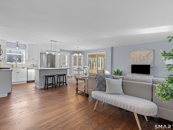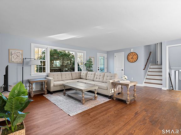 Welcome to 7 Coach Light Dr, a beautifully updated 3-bedroom, 2.5-bath split-level home tucked into a quiet cul-de-sac in the heart of Clinton. From the moment you arrive, the home offers a sense of warmth and comfort across 1,920 sq ft of thoughtfully designed living space. The open-concept main level features a recently updated kitchen with Fabuwood custom cabinetry, Calacatta quartz countertops, stainless steel appliances, and hardwood floors throughout, flowing seamlessly into the living and dining areas-perfect for everyday living and entertaining. Just a few steps up, the second level offers a refreshed primary bedroom with an updated en-suite bath, two additional bedrooms, and a full bathroom, creating a flexible and well-balanced layout. The updated lower level provides additional finished living space with LPV flooring, a gas stove, and a custom built-in bookcase, ideal for a home office, media room, or quiet retreat. A convenient half bath with laundry hookups is also located on this level. One ofo the home's standout features is the large four-season heated sun porch, perfect for year-round enjoyment while overlooking the spacious, flat backyard. Outside, enjoy a refinished deck, two storage sheds, a two-car garage, and OWNED solar panels. Ideally located minutes from Clinton Outlets, the Village Center, Town Beach, and I-95, this home offers peaceful living with unbeatable convenience. A must-see to truly appreciate it!