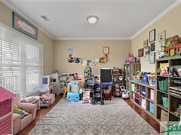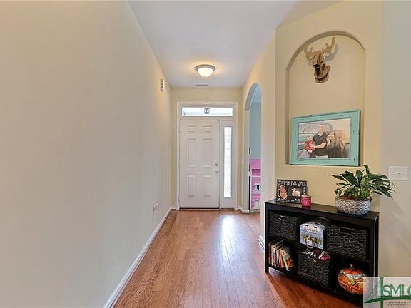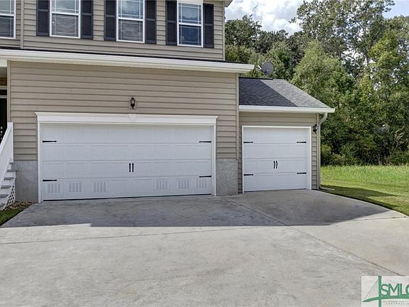 NO HOA! Well maintained 3 Bedroom, 2 1/2 bathroom with a 2 car garage and separate GOLF CART GARAGE! Light and bright open floorplan downstairs with kitchen opening into the living room with wood floors throughout. Gas FP in the living room. Kitchen has Stainless Steel Appliances, large pantry and and a breakfast bar. All bedrooms and laundry room are upstairs. Master Bath has separate shower and garden tub as well as double vanities! Backyard includes a great deck for entertaining and a privacy fence. Close to HAAF and quick access to I-95 and Ft. Stewart. 20 minutes to Downtown and Pooler! Optional summer membership to nearby POOL!