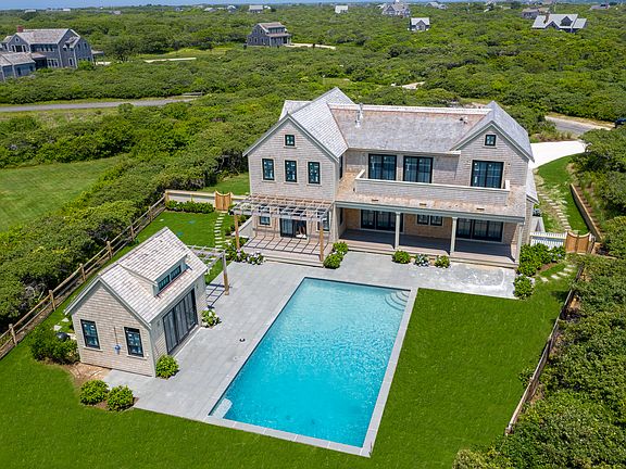 Welcome to this striking Tom Nevers home, a 4,500 sq. ft. sanctuary combining luxury with the serene beauty of Nantucket. This recently built home offers ocean views and a refined, design palette across three finished levels. Features include a heated saltwater pool and nearby beach access, which ensures a perfect blend of relaxation and coastal enjoyment. Each level offers a sophisticated living room, enhanced with wet bars in the basement and top floor for elegant entertaining. Four spacious bedrooms, each en-suite, provide luxurious comfort for family and guests alike in this exquisite Nantucket haven just a short ride from town. Being offered fully furnished, this is as turnkey as it gets!