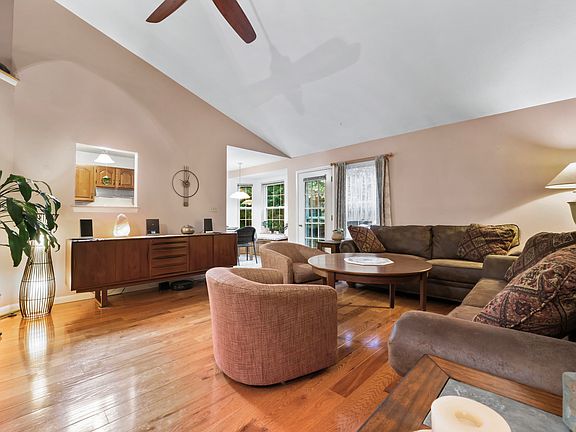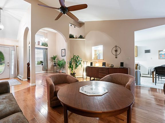 Not looking for cookie cutter? You have found it! This home emotes warm details that make it unique. Arched doorways, Cathedral ceilings, Glowing hardwood floors. The layout is spectacular, with the primary suite with its own bath on one side, and the other two bedrooms and bath on the other side separated by the kitchen, living room and dining nook. You will love the breakfast corner built-in that overlooks the wooded backyard.