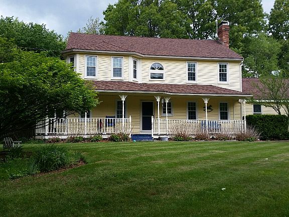 Farmer's Porch welcomes you to this meticulously cared for, move-in ready Colonial home, overlooking a beautifully landscaped, one-acre lot. The two-story foyer and French doors lead to the formal dining and living room with hardwood flooring. Kitchen with pantry, updated with granite and tile backsplash. Spacious, eat-in area leading to a screened-in back porch with hot tub and yard access. Family room open to the kitchen has a fireplace with a pellet stove insert, hardwood flooring, and ceiling fan. Mudroom/laundry room entrance from 2 car garage and ½ bath complete the main floor. Large, bright master bedroom with walk-in closet, tile floor and linen closet in master bath. Two generous sized bedrooms with large closets share a tiled full bath with a large linen closet. Partially finished basement with theater set-up, also has a large workshop area and ample storage. Situated on one acre of beautifully maintained grounds.