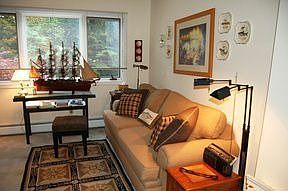 An open floor plan with lovely hard wood floors,dramatic spiral staircase, raised hearth fireplace, large country kitchen, elegant dining room and year-round sunroom with lovely views, are just a few of this condos amenities.Private and peacefully quiet on the outside, elegant on the inside;this is a must see.