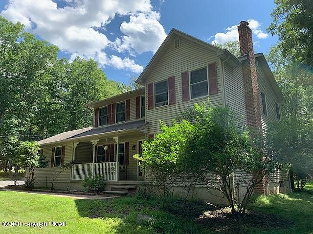 BACK ON MARKET DUE TO BUYER NOT OBTAINING FINANCING!! NO DUES! NO DEVELOPMENT! COMMUTER FRIENDLY! THIS HOME IS A GEM! THIS COLONIAL HOMES OFFERS A LOT! PICTURESQUE LANDSCAPE SETTING AT END OF CUL-DE-SAC LOCATION FEATURING 3 BEDROOMS & 2.5 BATHS ON AN ACRE OF LAND! LARGE 2 CAR GARAGE WITH STORAGE 484 SQ. FT.! THE HOME HAS ATTIC STORAGE AS WELL! PARTIALLY FINISHED BASEMENT HAS BEEN DRY LOCKED & IS READY TO BE FINISHED OFF! WOODSTOVE IN BASEMENT TOO! NEWER FLOORING ON THE INTERIOR OF HOME + A REAR PORCH TO ENJOY THE NATURE OF THE POCONOS! THERE IS A LARGE PATIO IN THE REAR AS WELL!