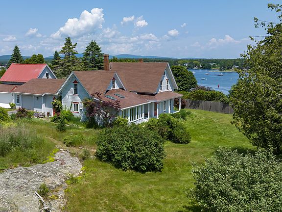 Built in 1877, with views of the picturesque Bass Harbor and mountains of Acadia, this year-round, three-bedroom, two full bath, modern farmhouse is tucked back on a pastoral 1.10-acre corner lot with perennial gardens, apple trees, and granite outcroppings. As you enter through the front door, there is a library with original floor to ceiling windows and bookshelves. The living room has a wood burning fireplace and original built-ins and opens to a large deck overlooking the harbor. With direct access from the entry foyer and the garage, the eat-in kitchen opens to a four-season sunroom with a screen door leading to the breezeway and front porch. The attached barn has been converted into a bright studio and gallery space with its own private entrance and deck. Just steps from the Town dock, a path leads from the porch to easily portage kayaks, stand up paddle boards, boats, or fishing gear to the water, and Up Harbor Marina is conveniently close by for bigger craft. Located in the scenic village of Bernard on the Quiet Side of Mount Desert Island and within walking distance to Back Bay beach, the Bass Harbor library, the Kelly Farm Preserve, and Thurston's, this charming property is perfect for private use or vacation rentals, with the bonus of the existing studio/gallery or a reimagined space.