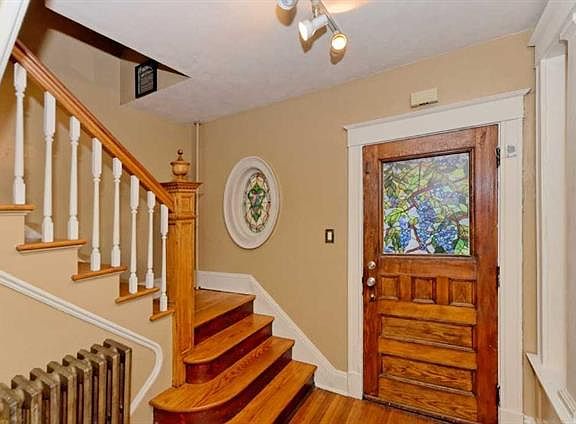 Charming city colonial situated on rare double lot. Home features wood floors throughout, stained glass window, pocket doors, built in cabinets and chair rail. Updated full and 1/2 bath. Insulation added, updated electric in basement, dining and living rooms. Brick hearth for possible wood stove, Attic has potential to be incredible master suite. Large lot with beautiful perenial gardens.